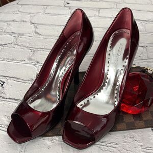 Red patent BCBG generation heels with peep toe excellent condition no damage features a heel height of 3 inches
