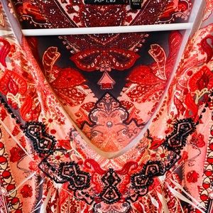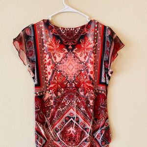 Red pattern blouse Length: 25” inches Width: 17” inches Size: Large