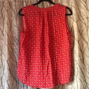 Red and white patterned top. Beautiful detail on the collar with tie