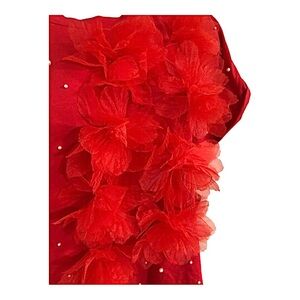 Red pearl adorned 3d flower floral embellished short sleeve shirt top size XL new