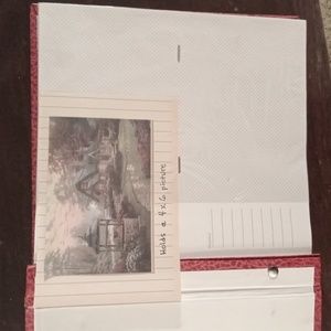 Cute red square photo album. 8.5" x 8.5" x 1.5" outer dimensions. 50 pages, each holds 4 photos, so total of 200 photos capacity. Each page is 7.5" w x 8.25" h, with a memo area at the side. Not sure how old the album is, but never used. There are a couple of small blemishes on the back cover. To me they seem inconspicuous. Thanks for looking!
