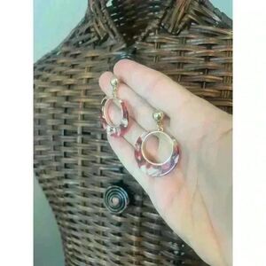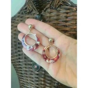 Red pink Marbled Pattern Hoop Earrings With Gold Ball Accent