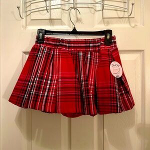 size small.. New with tags red plaid skirt, no damage or defects.. super cute perfect for fall or summer