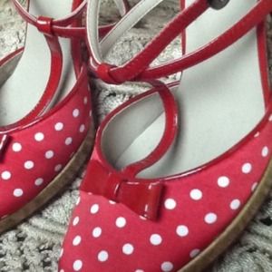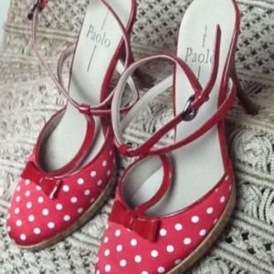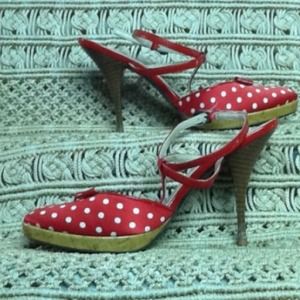 Pin up style red polka dot heels. Ankle strap very comfortable and sexy.