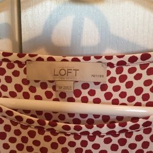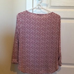 Brand new, no tags, but never worn. Cream base with maroon polka- dots. Buttons on the sleeve and cute pocket on the front. Smoke free, pet free home.