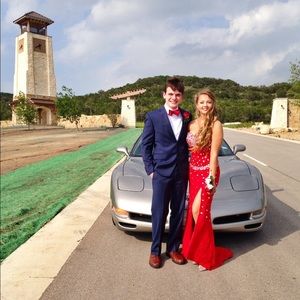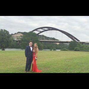A gorgeous red sparkly prom dress! Worn only once! Still in good condition. It's made one girl happy, time to make another.