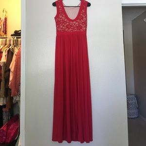 Red, full length prom dress! Lace with a nude underlay! Never been worn!