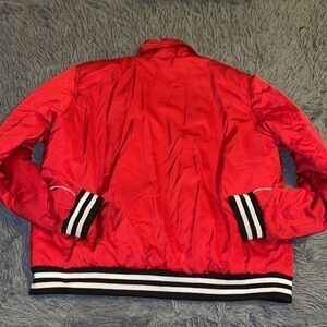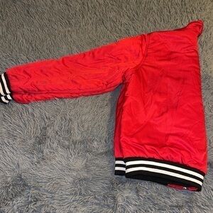Red puff jacket, I removed the tag but I think it was from FOREVER21. Size XL juniors , it would fit a Regular M size. Comfortable and light (as in weight). Very chick. Two pockets in front, zipper. No damage other than the tag removed. Pet and smoke free home