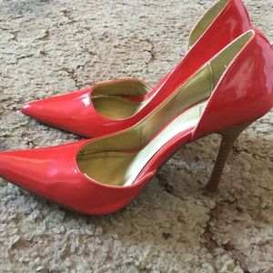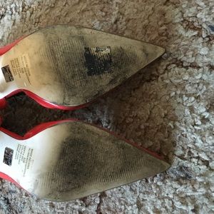 Red high heel pumps. Worn quite a bit but still in great condition. Bottoms are just a bit dirty.