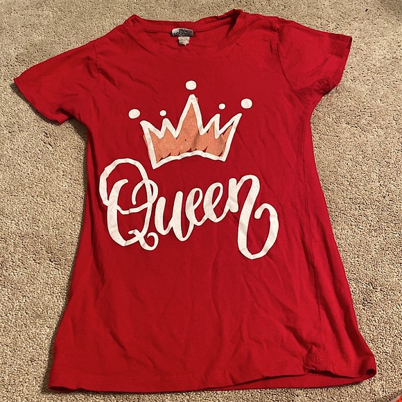this red 'queen' shirt is ready to make a statement. Feel empowered and embrace your inner queen with this bold and stylish red shirt! 👑❤️"