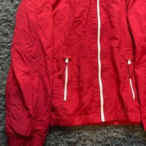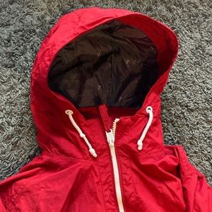 Super cute red outer layer. It has a fun anchor pattern on the inside and a bold red on the outside!