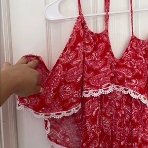 The strings go around your neck and over your shoulders. There are also pieces that go over your arms as shown in the pictures, however these don’t need to be used and it still looks great!