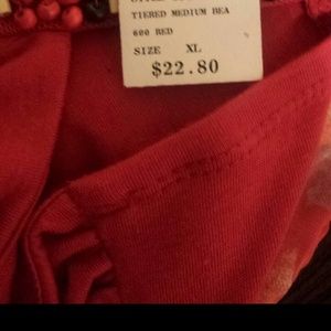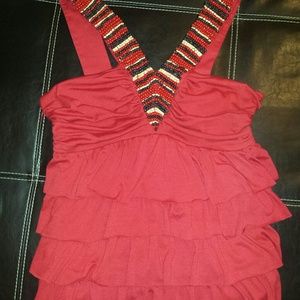 Red with ruffles down thefront. V neck top with beaded detailing. Still has tags. XL