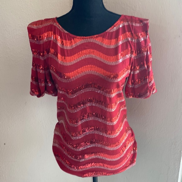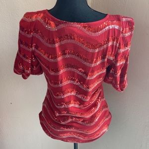 Super flattering tee Puff sleeves Just enough sequins to make a statement