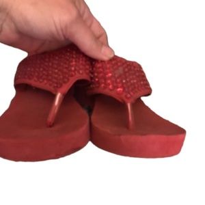 Red sequin size 10 wedge flip flop sandals also available in navy blue