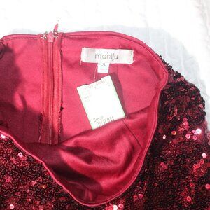 Red sequins high waist lined MAXI SKIRT Mermaid by Maniju NWT Sz Small
