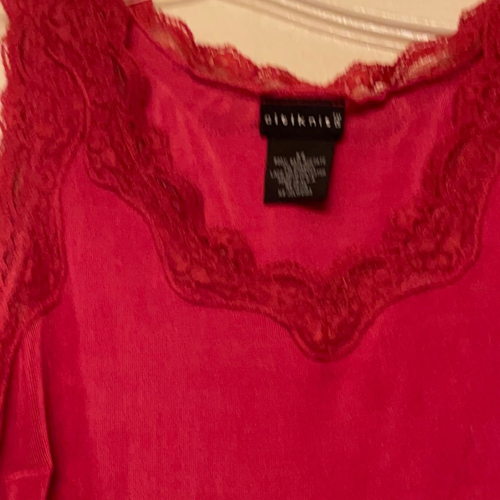 Stunning red v neck shell trimmed in lace.