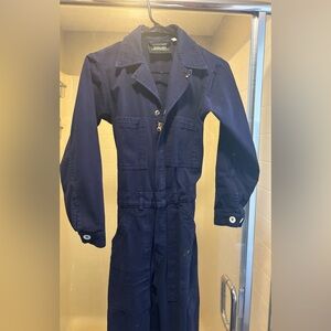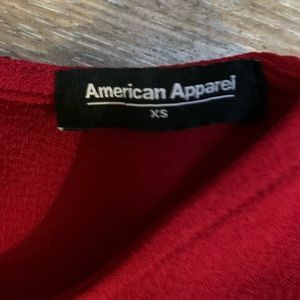 Red trapeze flowy shift dress from American apparel. Material is red crepe. Dress is sleeveless but buttons up high at the neck. No flaws.