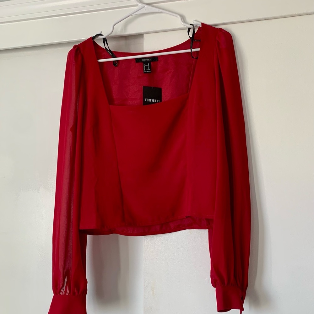 Red corset type top (zipper on the side) see through sleeves as shown in pictures. Size medium. Tags attached