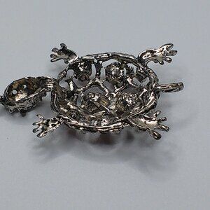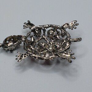 Red silver Turtle Pendant, silver color, red rhinestone, shiny crystals details