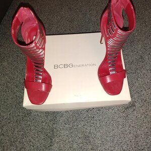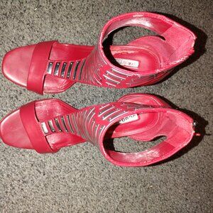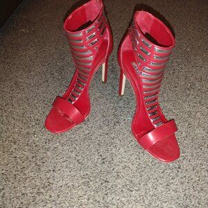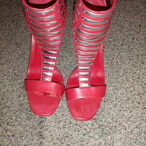 Sexy red and silver open toe heels gently worn after 5:00 with that vibe.