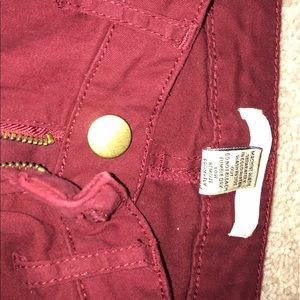 Deep red skin tight skinny jeans that have almost a jegging texture! Super soft! Gold button and zipper! Never worn!