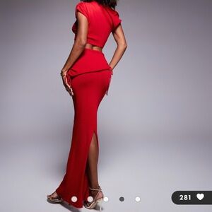 Wander Doll Yris knit off shoulder ruched detail top and maxi skirt set in red