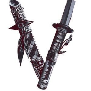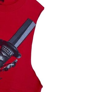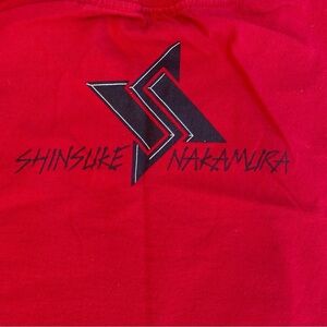 Red sleeveless crewneck tee WWE Shinsuke Nakamura katana graphic. 100% cotton.