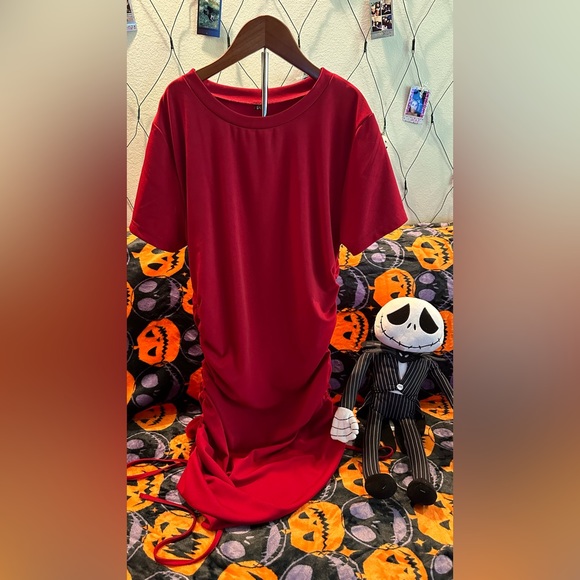 Red, solid drawstring, fitted dress