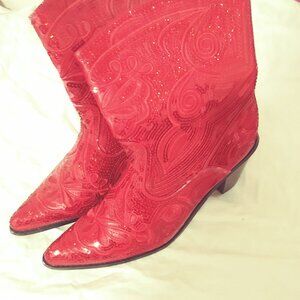 Red sequins. From a San Antonio Texas boutique on the historic Riverwalk called "The Silver Spur". Never used.