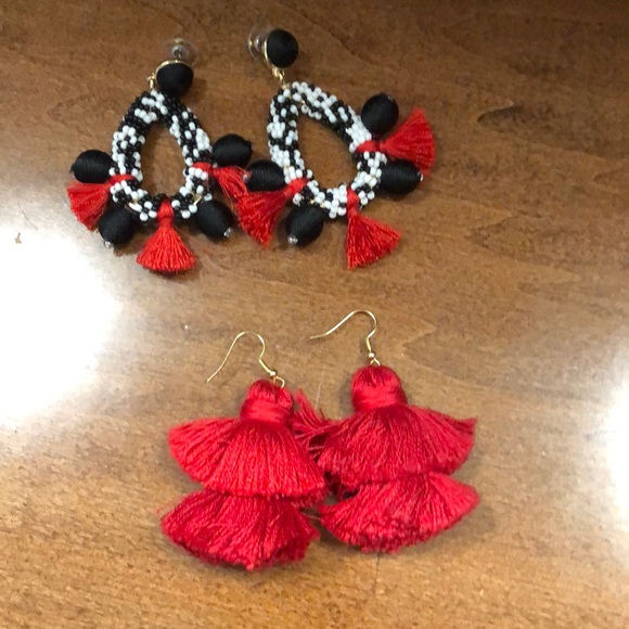 Excellent condition! Red tassel earrings. Black/ white beaded red tassel earrings.