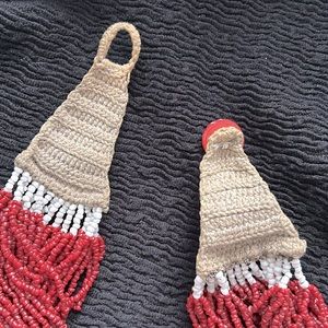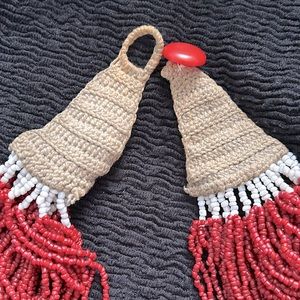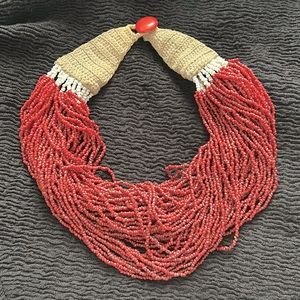 Pre❤️, a statement necklace multi red and white seed beads and crocheted clasp.