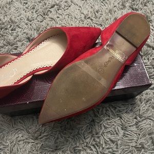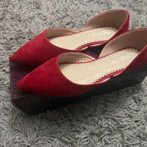 Size 7 red flat suede shoes. Worn twice very comfortable.