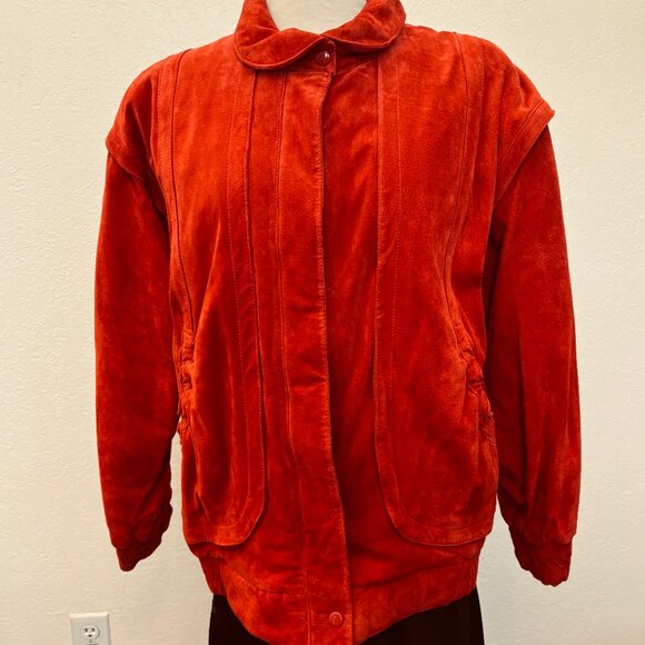 Red suede leather coat jacket Womens SZ M label 'gallery' for Neiman-Marcus