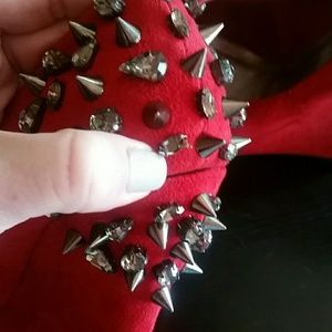 Red suede spiked wedges
