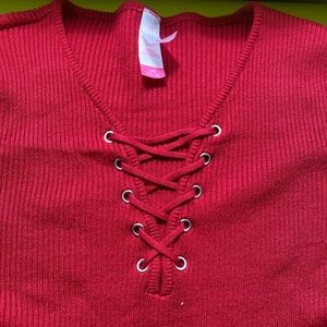 Red sweater, worn once and in perfect condition, large but fits like a medium