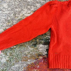 Maeve by anthropologie red short sweater with puff sleeves