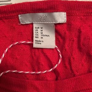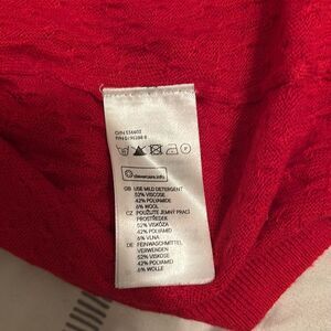 Red long sleeves sweater. 52% viscose, 42% polyamide and 6% wool.