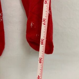 Festive holiday wear and a perfect match for any ugly holiday sweater! There are no tags. They were worn once. I'm guessing they are a small or a medium. They have feet, no holes, elastic waistband and silver snow flakes. Very stretchy and warm.