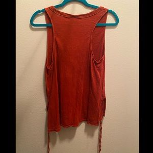 Very cute red tank top! Super comfortable and looser fit! Has strings on the side as pictured to tie a cute bow or whatever you like!