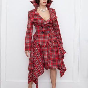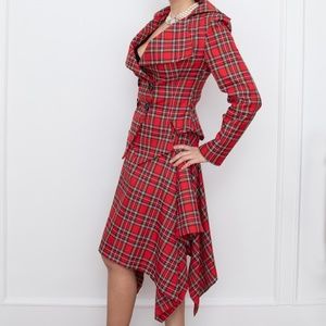 Red tartan tailored 2 piece skirt suit Vivienne Westwood style