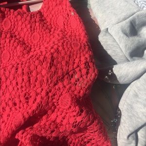 Red Lacey dress with small cut outs on the side