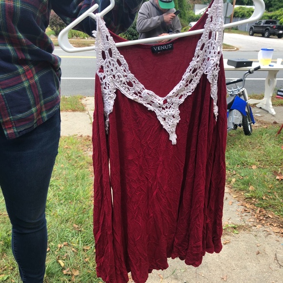 Red open shoulder top