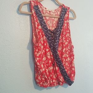 Super cute draped top with elastic waist and lace up front. New with tag, never worn and in perfect condition!
