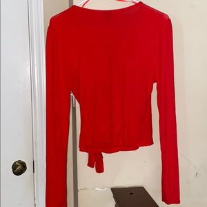 Red long sleeve top that ties on the bottom