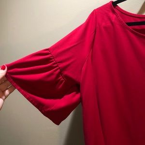 Beautiful red top made out of durable material! Perfect for the office or a casual event! Sleeves are adorable and add a youthful feel to this top!