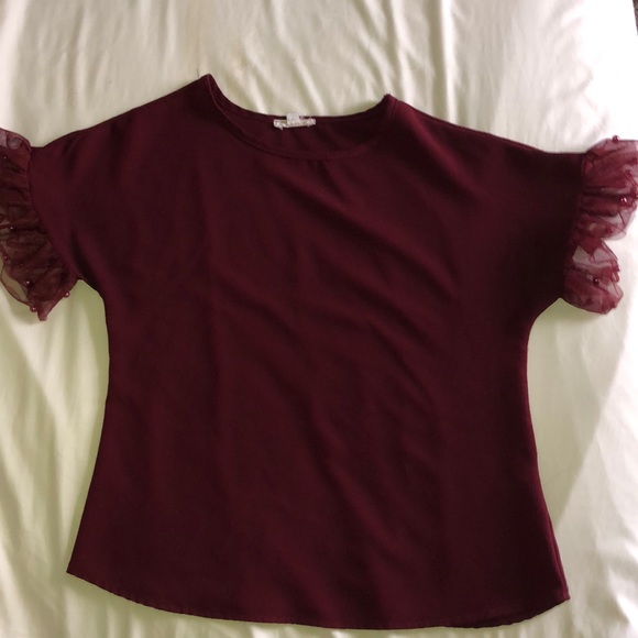 Red top with tool sleeves and red pearls