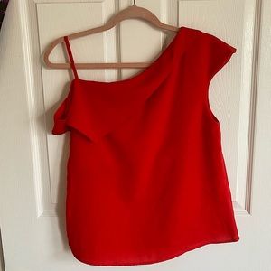 Super cute red, off the shoulder top! Never been worn! This top is on the shorter side.
