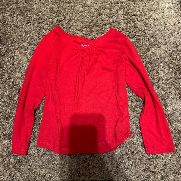 Red long sleeve top.