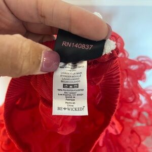 Full red tule tutu with elastic waist band. Tag size says OS; best for med to large. Add it under a dress that needs a bit of flair or use it as part of your Halloween costume.